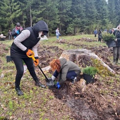 mes pasodinome per 10200 spygliuočių ir apsodinome beveik 3ha žemės ploto.